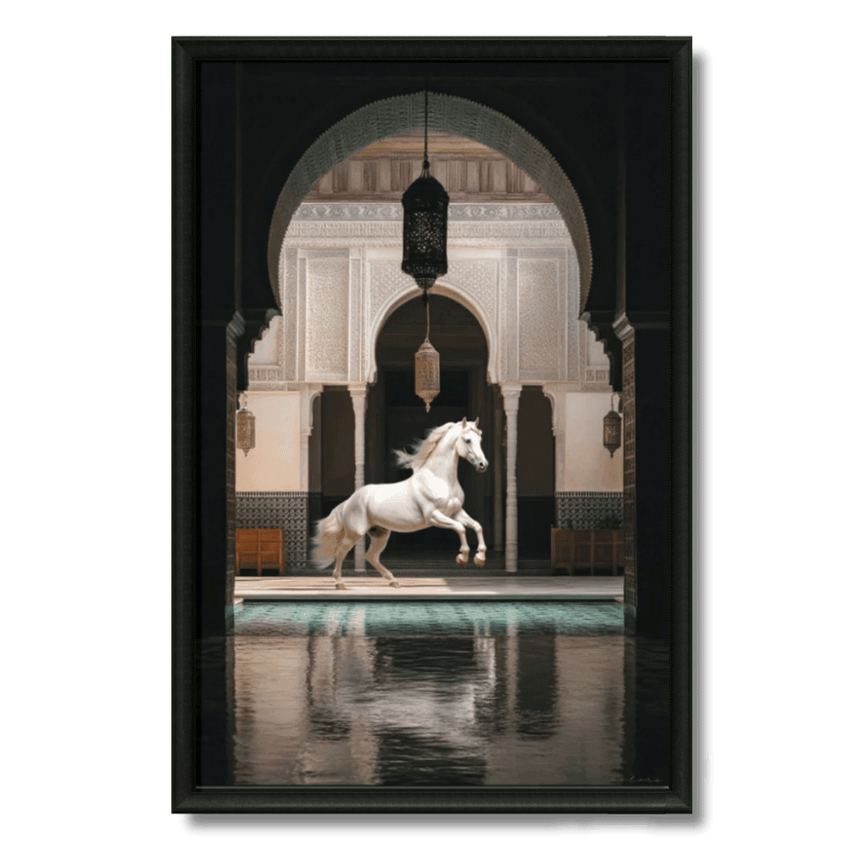 Élégance et tradition : un cheval blanc au cœur d’un riad marocain. Un tableau qui incarne la beauté architecturale et... Read more