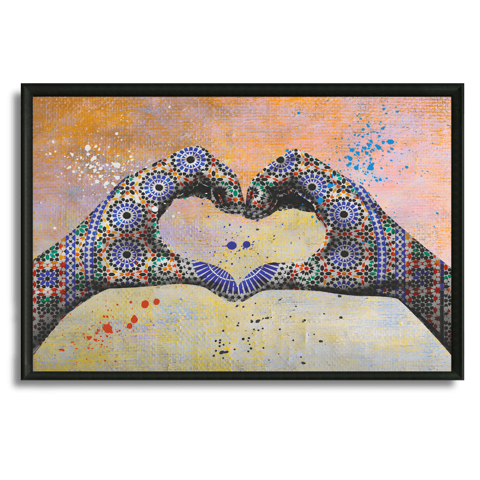 Illustration chaleureuse représentant deux mains formant un cœur devant un décor de zellij marocain, symbole d’amour et de culture. ✔... Read more