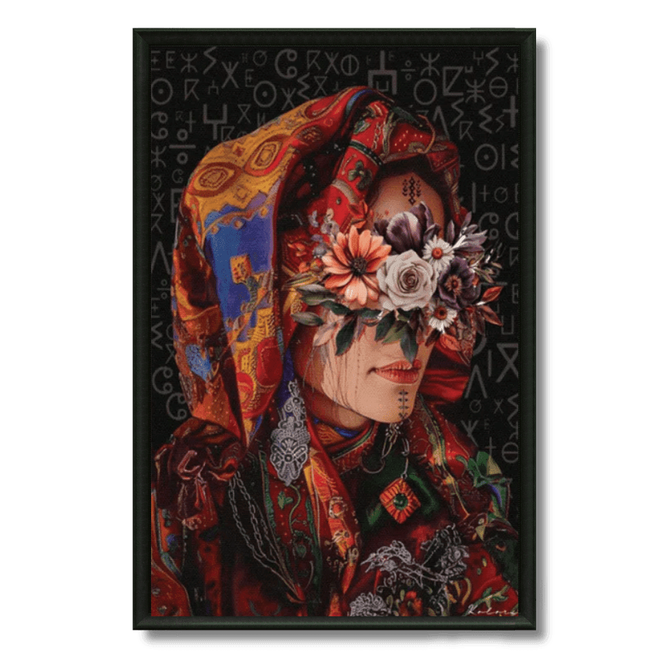 Sublimez vos murs avec ce tableau mêlant portrait de femme marocaine traditionnelle et motifs floraux. Une œuvre unique entre culture... Read more