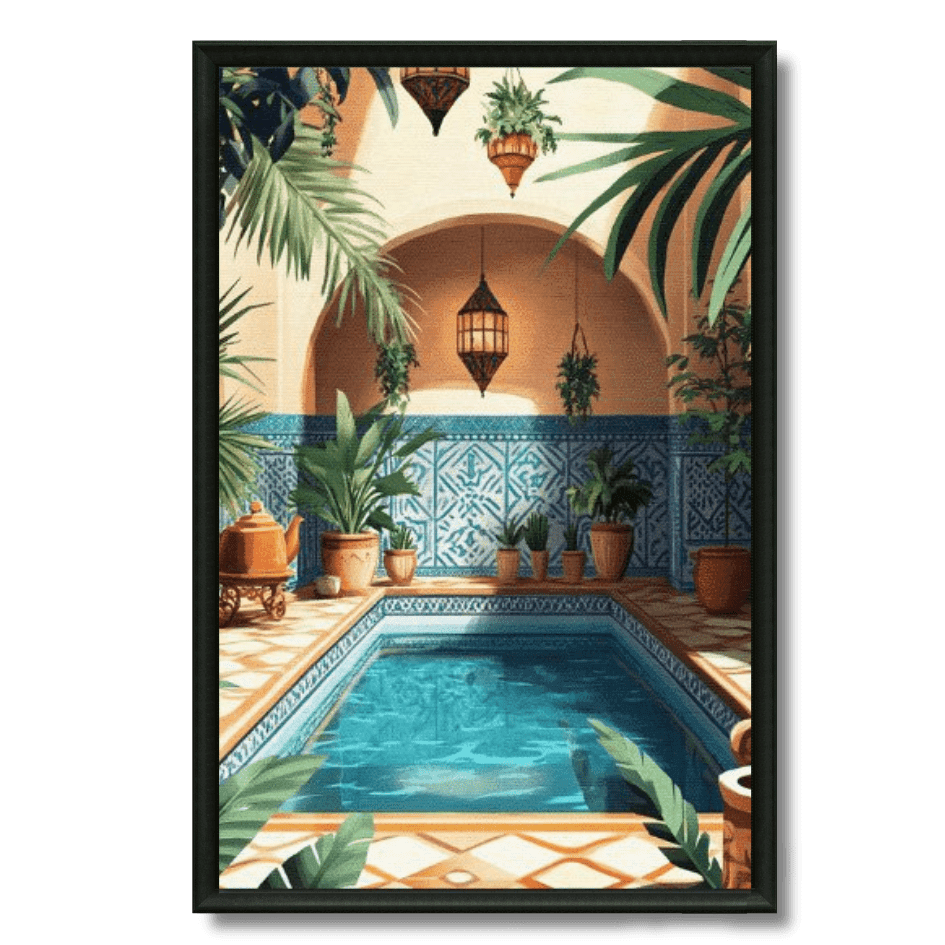 Apportez chaleur et exotisme à votre maison avec ce tableau illustrant un patio marocain traditionnel aux couleurs chaudes. ✔ Impression... Read more