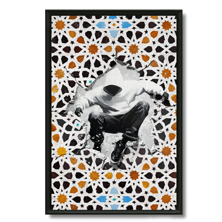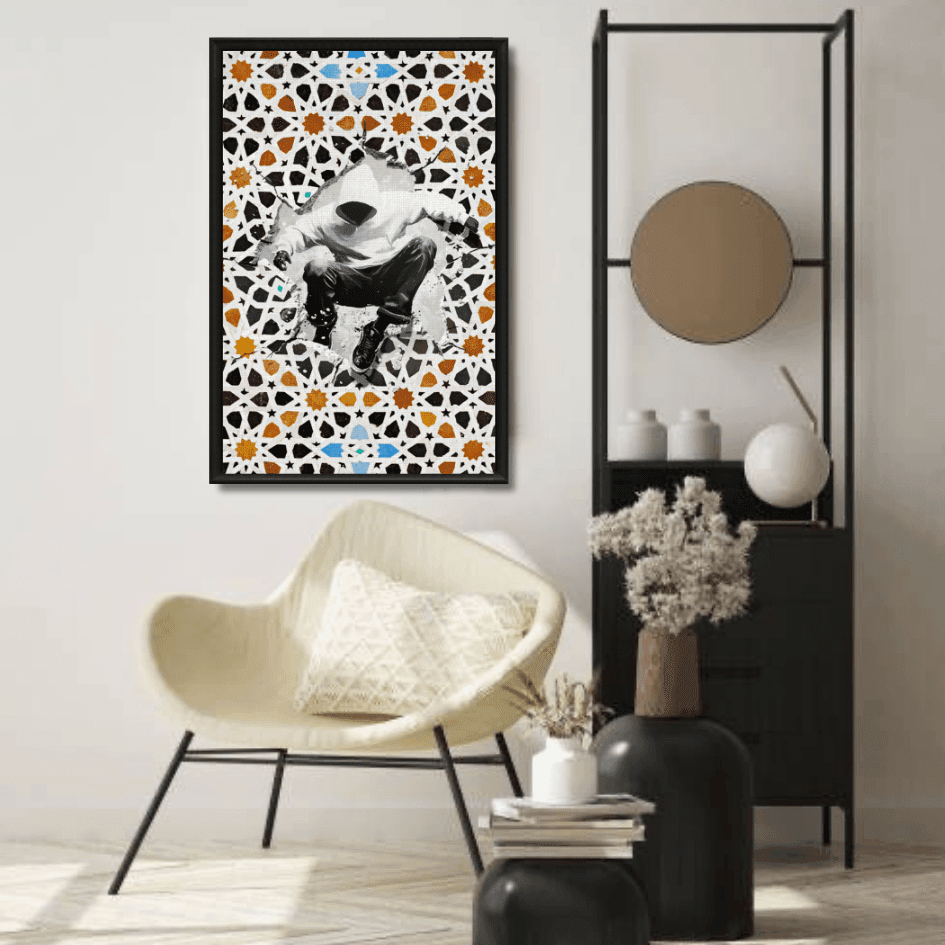 Fusion unique entre street art et tradition : un skateur surgissant d’un motif zellij marocain, symbole de liberté et de... Read more