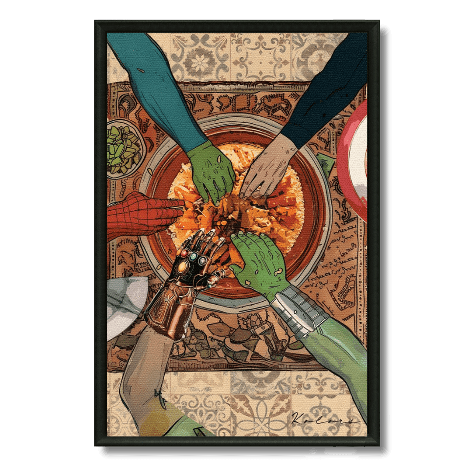 Une scène pop art unique où des personnages iconiques partagent un tajine marocain, fusionnant culture geek et traditions culinaires du... Read more