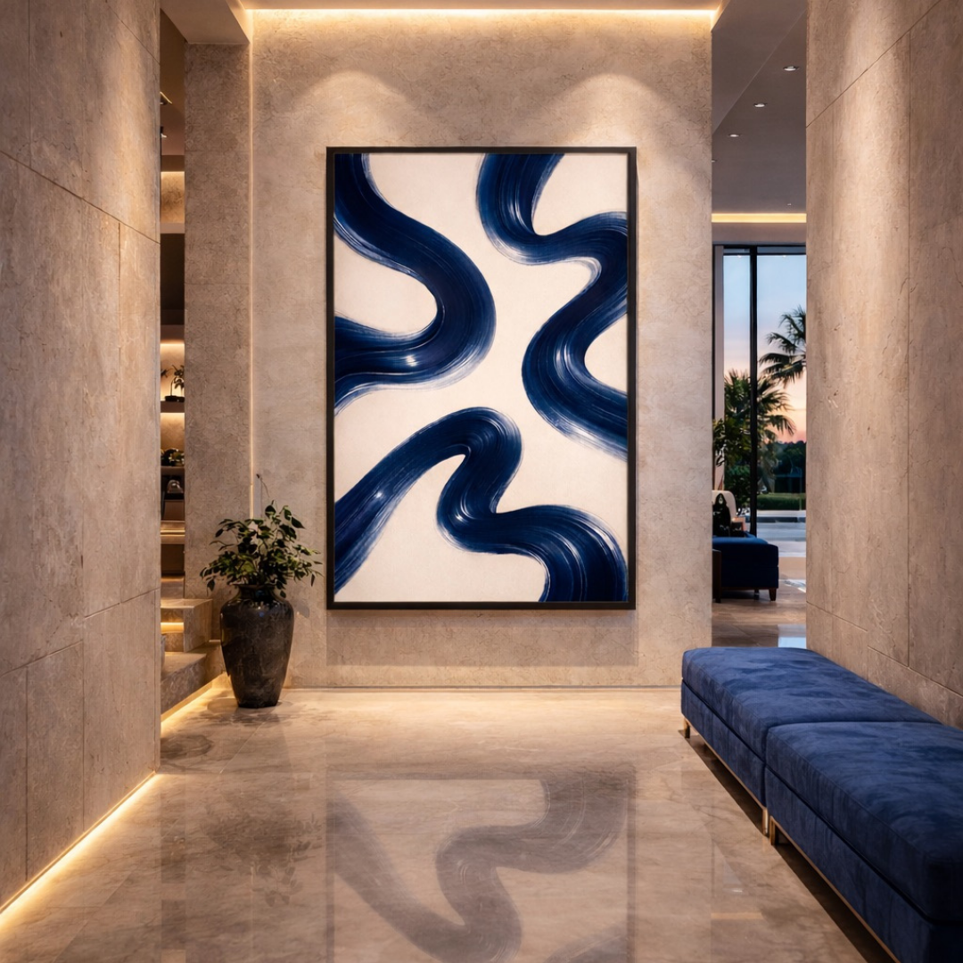 Tableau Abstrait – Profondeur Bleu