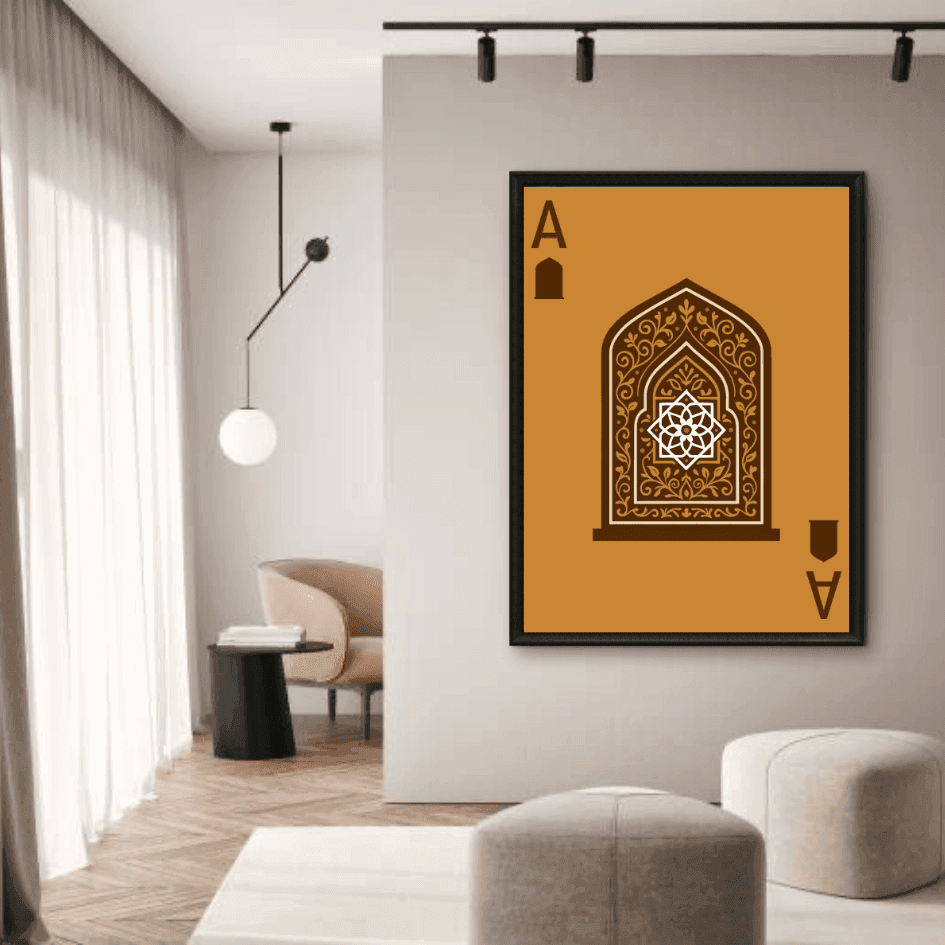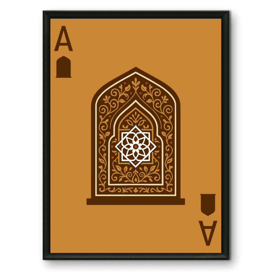 Illustration stylisée d’une arche marocaine richement décorée, présentée en format "As" de carte à jouer. Une œuvre minimaliste et raffinée... En savoir plus