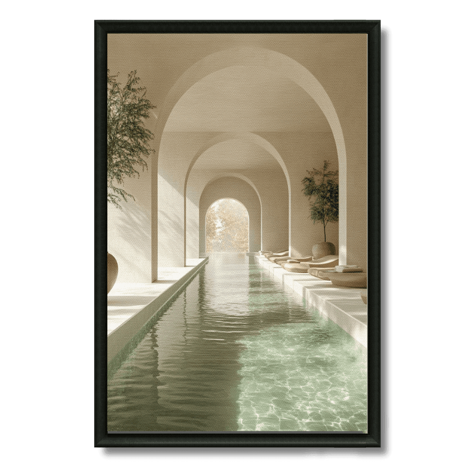 Offrez-vous un voyage sensoriel avec ce tableau représentant un couloir de piscine baigné de lumière, orné d’arches au style oriental... En savoir plus