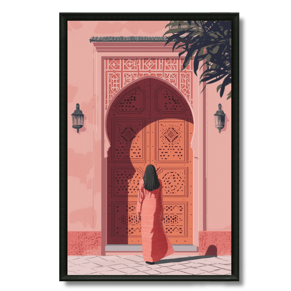 Ajoutez poésie et élégance à votre déco avec ce tableau représentant une femme en robe face à une porte traditionnelle... En savoir plus
